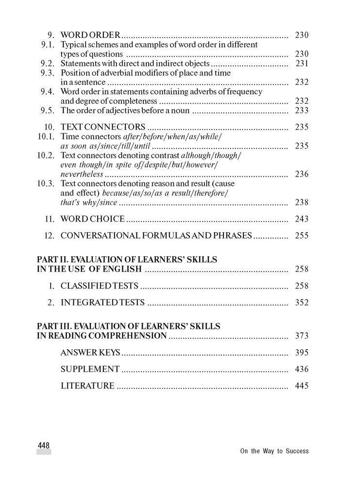 Пособие содержит упражнения и тесты, направленные на обучение и тренировку лексико-грамматических структур и явлений, отобранных в соответствии с учебной программой средней школы по английскому языку. В книгу также включены тесты по чтению, способствующие развитию навыков смыслового восприятия письменного текста. Пособие предназначено для поступающих в вузы, в которых английский язык изучается как основная специальность. В то же время оно может быть полезно для самых разных категорий лиц, желающих усовершенствовать знание английского языка.Характеристики