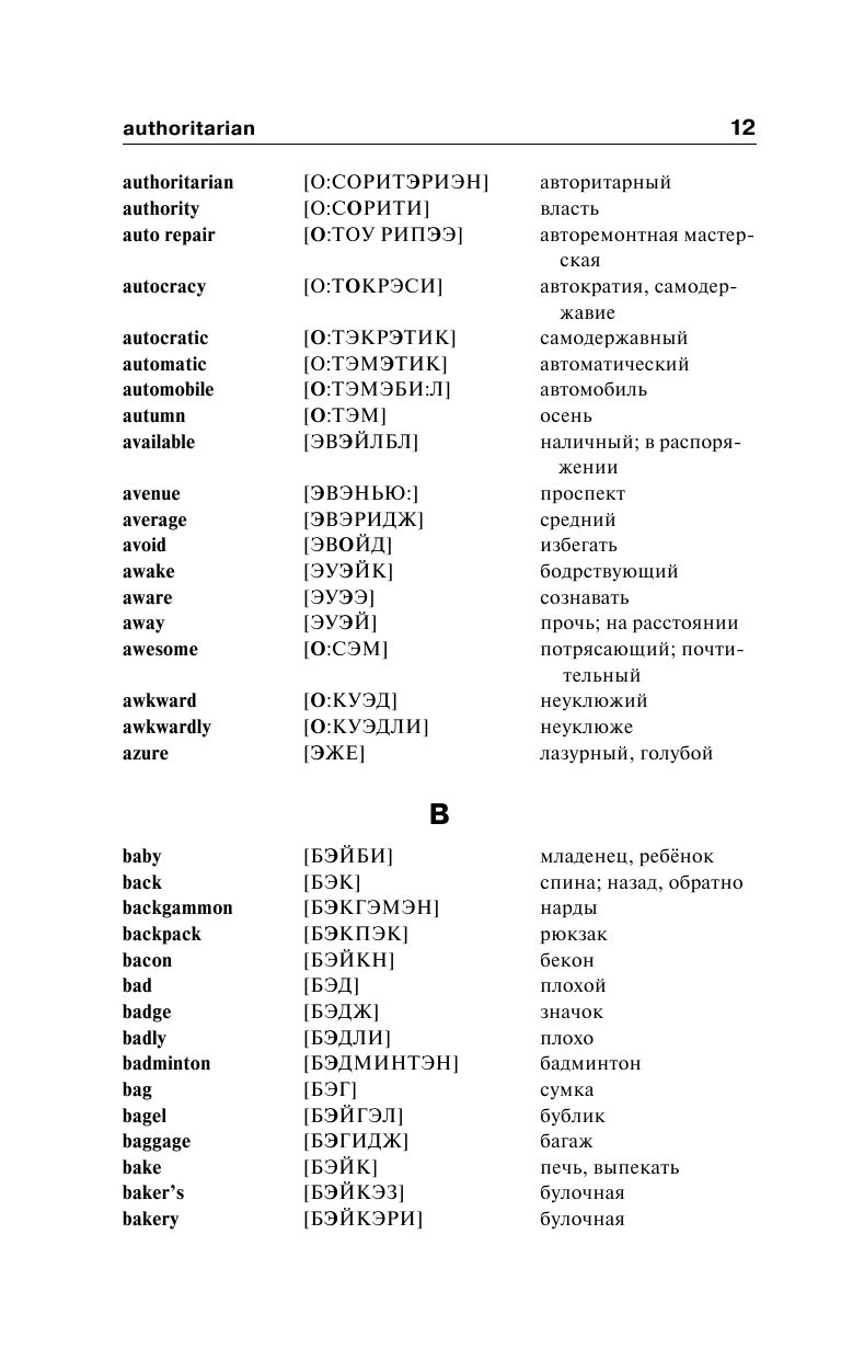 Известный автор С.А.Матвеев предлагает англо-русский и русско-английский словарь для начинающих учить английский язык.В каждой части содержится по 4000 самых употребительных слов. Все слова снабжены транскрипцией русскими буквами, причем в русско-английской части тоже дается транскрипция английских слов.