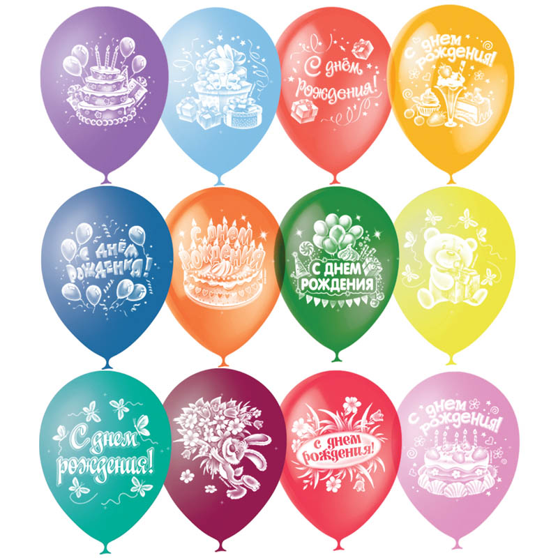 --...-КанцРЦ Возд. шары "С Днем Рождения", пастель+декор (цена за 1шт., в уп.50шт.) М12/30см