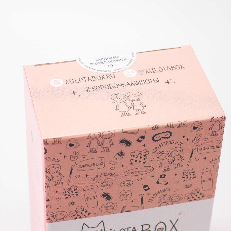 Каждая коробочка милоты наполнена необычными вещицами, которыми будет приятно пользоваться в повседневной жизни: милая канцелярия, уютные товары для дома, стильные аксессуары, предметы для здорового образа жизни и приятные мелочи. Внутри Milota BOX находится до 8 сюрпризов, упакованных в стилизованную подарочную бумагу тишью. Коробочка из плотного, дизайнерского картона. Размер коробочки: 22 х 14 х 9 см. Общий вес: 550 гр.